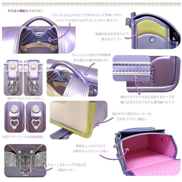 ◎란도세루(초등학생이 어깨에 매는 가방)의 양싸이드에는 나스카《》가 붙어 편리,그리고 양방의 어깨 벨트에는 방범 buzzer 등이 매어 달리는 하트형 캔부.게다가(더구나) 이 캔에게 사용 하고 있는 대갈못과 란도세루(초등학생이 어깨에 매는 가방) (주식,순무우먹이)카브《세》부분하의 대갈못은 야간에 차의 라이트 등에서 반사하는 반사 대갈못이 되고 있습니다.또한란도세루(초등학생이 어깨에 매는 가방) 중앙의 대부분과 (주식,순무우먹이)카브《세》하의 piping 부분으로도 반사 테이프를 사용♪♪