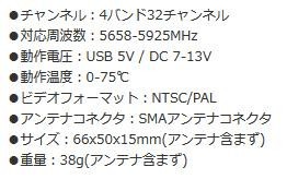 5.8GHz FPV Systemシリーズの5.8G Video Receiver(バンドチェッカー機能付)です。