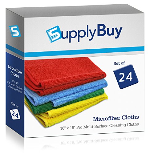 SupplyBuy Pro Multi-Surface Microfiber Towels | All-Purpose Cleaning Cloths | Pack of 24 - 16x16 (16" x 16")
