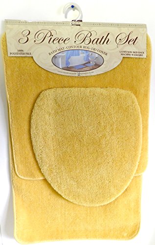 3 Piece Bath Rug Set Mustard Yellow Bathroom Mat Contour Rug Lid Cover Non Slip latex Bottom