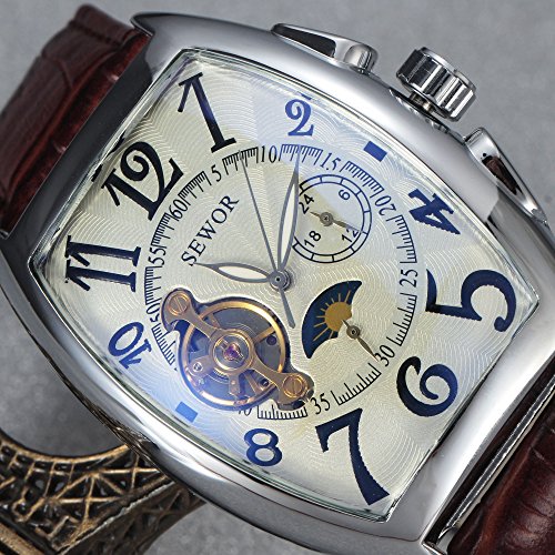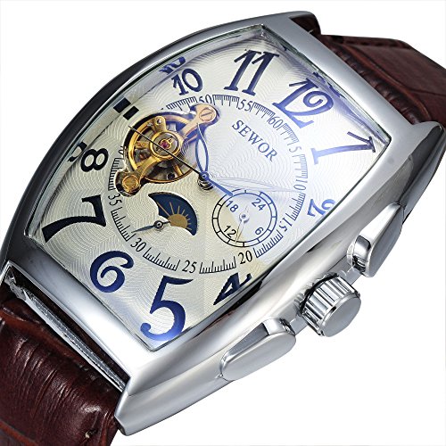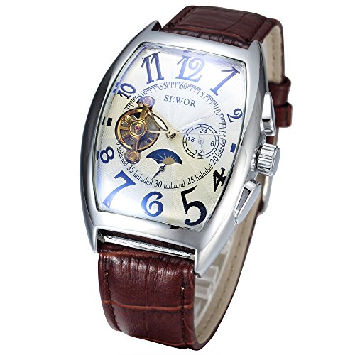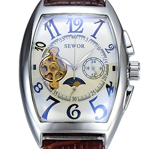 -. Title : SEWOR 腕時計 メンズ フォーマル 三針 自動巻き 機械式腕時計 合金ケース 皮革バンド ブラウン ホワイト