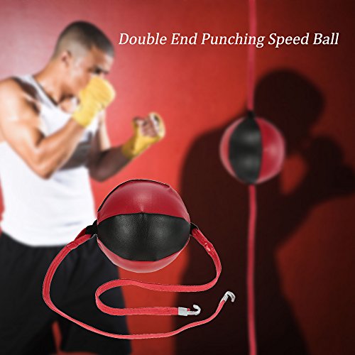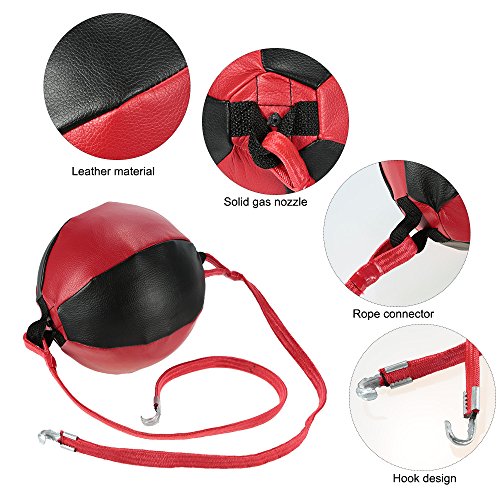 Features: Made of leather material, strong and wear resistant. The speed ball is greatly stitched and has a rubber bladder inside. Elastic rope fastened on the both side of the ball securely. Solid gas nozzle for durable use when inflating the ball. Hook design for fastening to anywhere you want, which is convenient for you to practice. Easy operation, just use a pump to inflate the ball, then you can enjoy punching training.(Pump is not included) Can be used for free combat or boxing training, a good tool for punching speed practice.