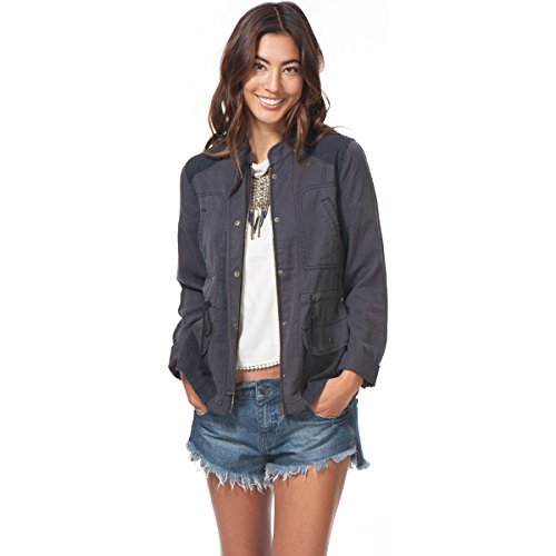 Snap-front jacket with eyelet insets at shoulders, sides, and front snap-flap pockets