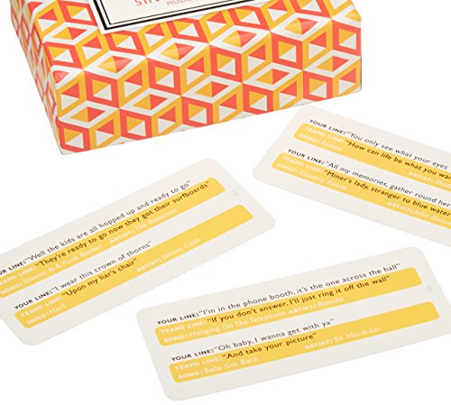 Studio : Wild Wolf Publisher : Wild Wolf Binding : Toy Product Description Game includes 140 Question Cards featuring 280 Songs and Instructions. Read out loud the lyric from a well-known song -- your team mates must then say or better still sing the next line. Earn extra points by guessing the artist and song titles. 0