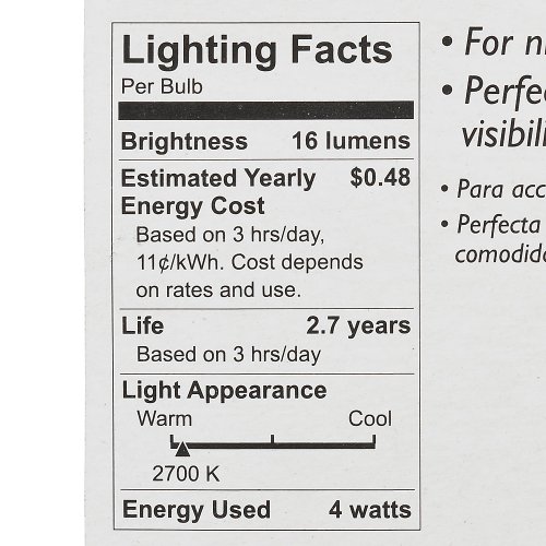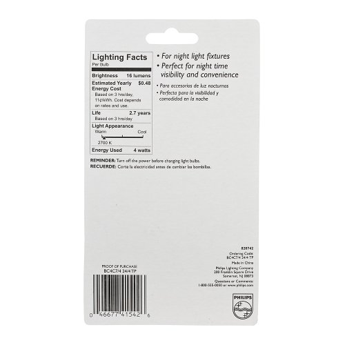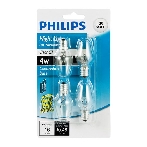 Philips 415422 Clear Night Light 4-Watt C7 Candelabra Base Light Bulb, 4-Pack