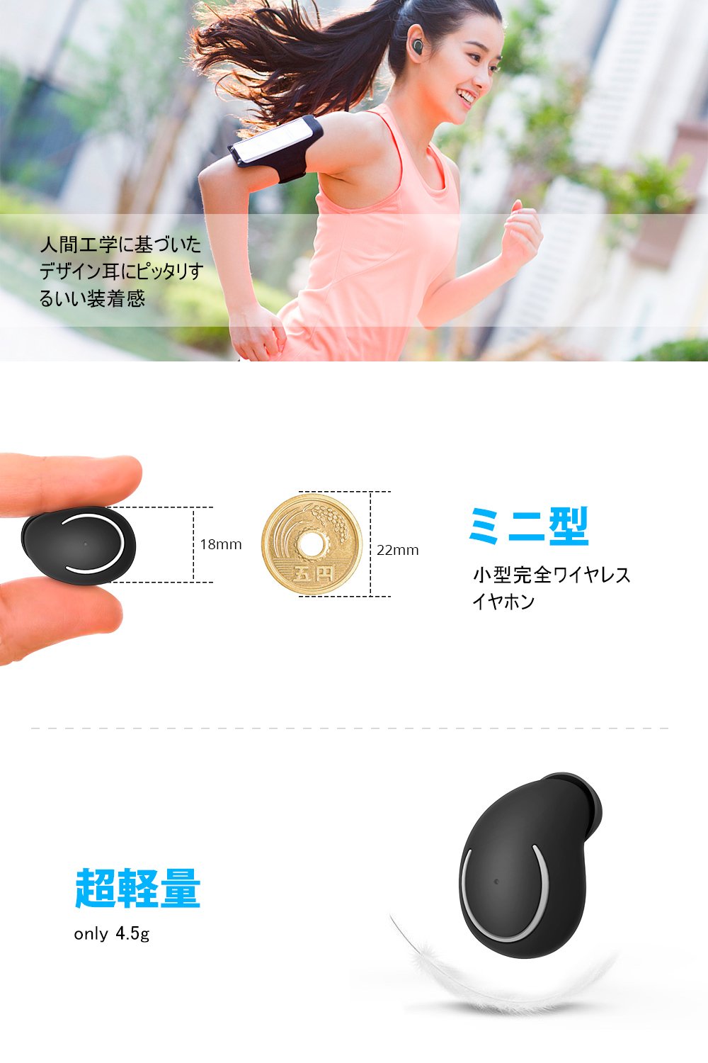 - Earphone: Built-in 45 mAh battery allows up to 3 hours of music playback.