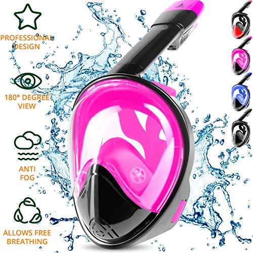 Full Face Snorkel Mask – Easybreath Snorkeling Mask – Breathe Both Your Nose & Mouth – Eliminates Gagging, Improves Safety & Comfort, and Fits Perfectly – Shatterproof Glass