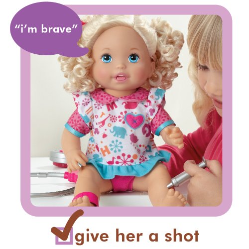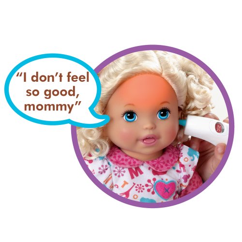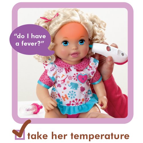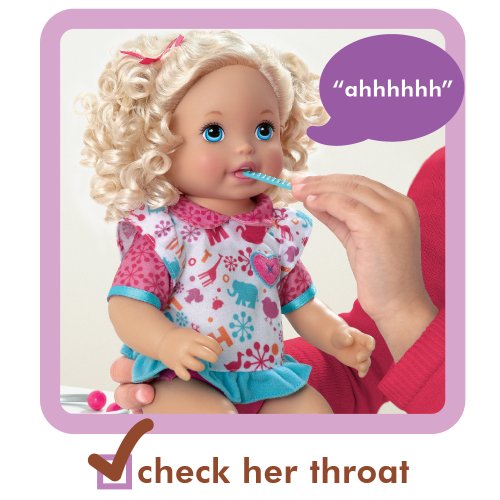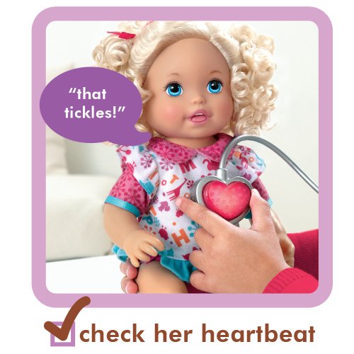 - Feature : This little girl is not feeling well, but her mommy can make her feel all better / Check on her with the included medical instruments and she will interact with all sorts of phrases / Use the reflex hammer on her knee (that really kicks) and she will giggle / Hear her heartbeat and check for a fever with the stethoscope and thermometer / Comes with interactive doll, tons of medical instruments and doctors bag and more