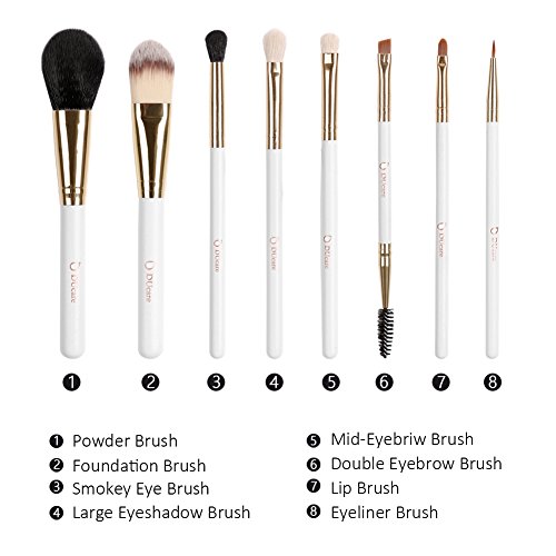-. Feature : 【About DUcare】:Stop paying for the name! You know, the big, the more $$$ need! Try DUcare professional quality brushes with ½ the P.R.Ice of the brushes; DUcare, a luxury brand, supports high quality brushes from our own brush manufacturer / 【8Pcs Basic Sets】DUcare New 8Pcs Brush Kit with leather case apply for Power, foundation,smokey,eyeshadow,Double-side eyebrow,eyeliner and lip makeup / 【Material】Natural goat hair with 100% top-grade synthetic fiber,High density and super softness similar to the natural hair ,affordable but easy to clean,suit for sensitive skin and cruelty free / 【Handmade】: Strictly accordance with more than 80 steps of production process, artisan carefully made each brush wholeheartedly to ensure its delicate and high quality / 【Back Guarantee】:If there is any defect or issue for our product,30-Day unconditional refund or replace guarantee,please feel free to contact us