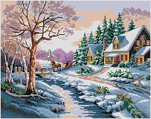 Crossdecor Stamped Cross Stitch Kits Needlecrafts Pre-printed Pattern 11 Count, Snowscape