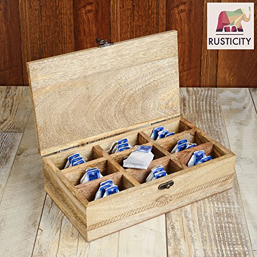 Studio : Rusticity Publisher : Rusticity Binding : Kitchen Product Description It is never too early nor too late to renovate your kitchen and dining area with a few rustic additions to complement your wooden spatulas and sun-kissed cabinets. With its rich light brown colour, intricate hand-carved designs and a wooden tree trunk texture, Rusticity's tea and spices organizer box skilfully handcrafted by rural artisans from remote villages in India has a lot to offer in terms of the desired rustic touch to your dining table. A perfect accessory to display along with your ceramic dinnerware or the genteel Opalware for a beautiful evening with your guests.