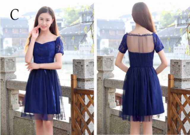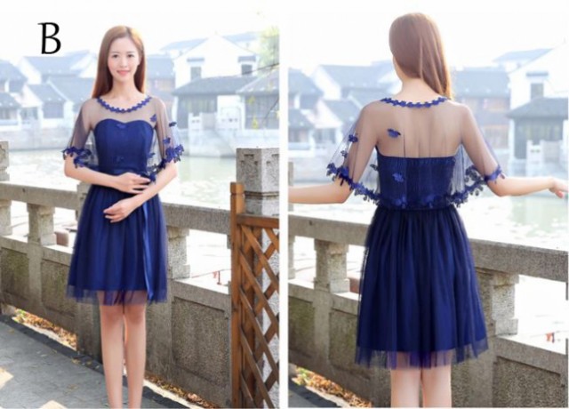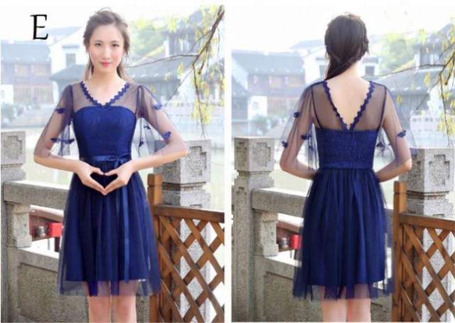重ねレースがフェミニンなパーティードレスです。