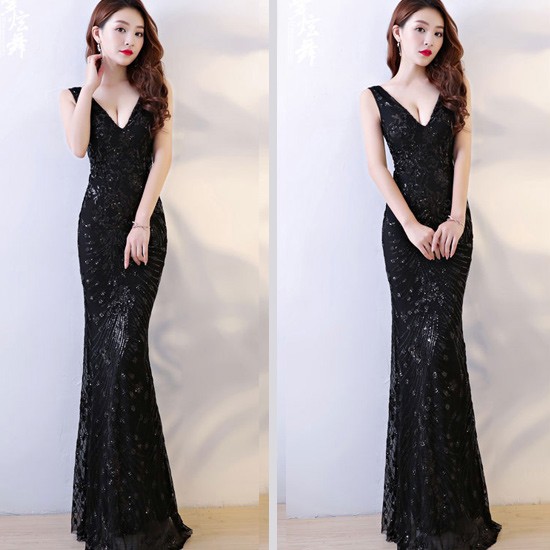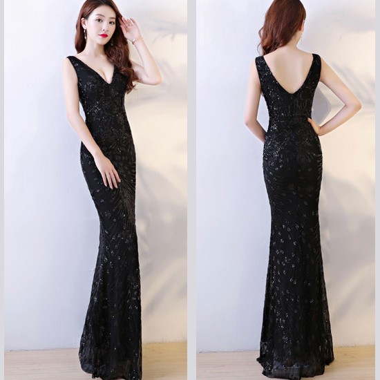 女性らしいシルエットを大切にしたタイトなロングドレスです。