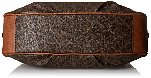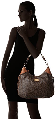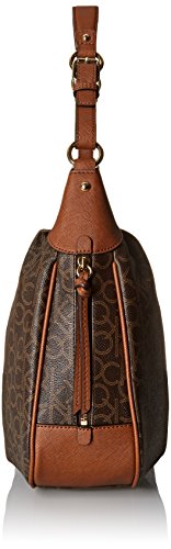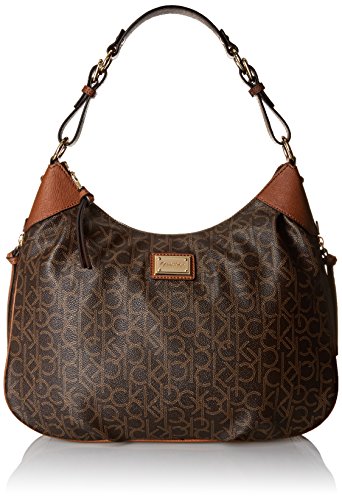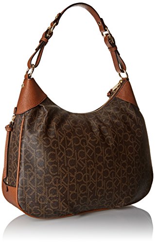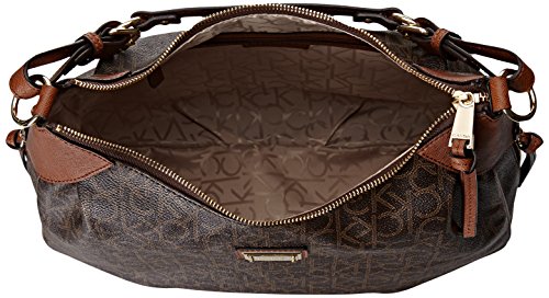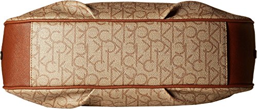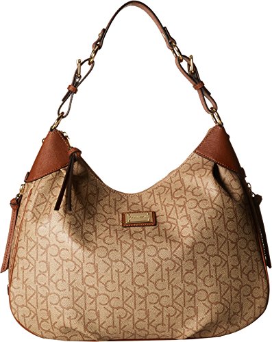 Calvin Klein Women's Hudson Monogram Hobo Textured Khaki/Brown/Luggage Saffiano Hobo