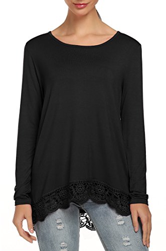 -. Title : Halife Women's Crewneck Long Sleeve T-shirts Tops with Lace and Crochet Trim