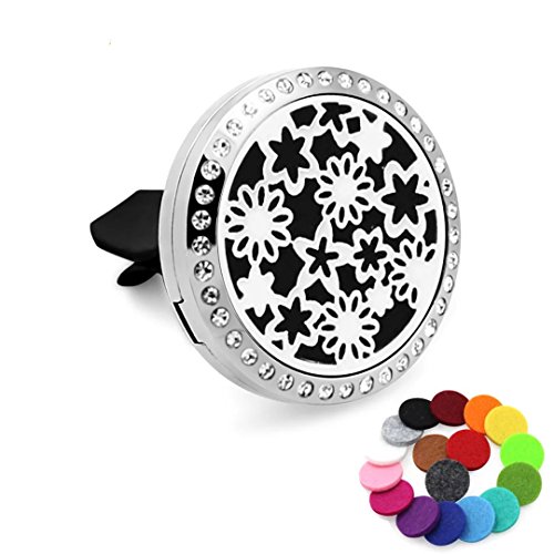 Car Air Freshener Aromatherapy Essential Oil Diffuser-Rhinestones Sky Stars Stainless Steel Locket,17 Refill Pads