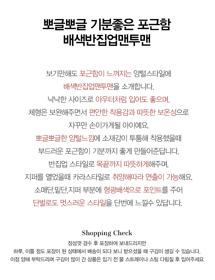 .같은 사이즈라도 체형에 따라 핏감이 조금씩 다를 수 있습니다.