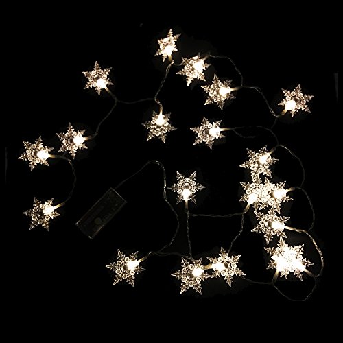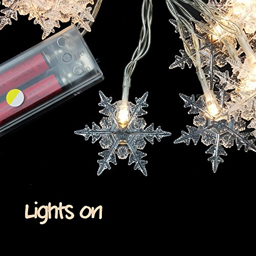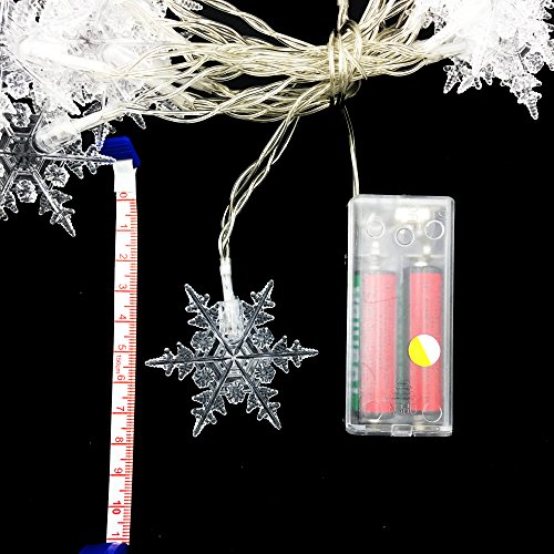 - [Specification]-20 head, 2.1m(6.9") snowflake decoration light is your best choice,creating a warm and romantic holiday atmosphere, enjoy the joy of gather time.Needs 2 pcs No.5 batteris(need to configure by yourself)