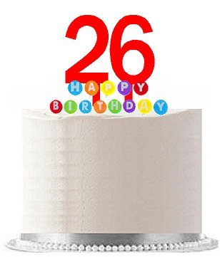 Item#026WCD - Happy 26th Birthday Party Red Cake Topper & Rainbow Candle Stand Elegant Cake Decoration Topper Kit