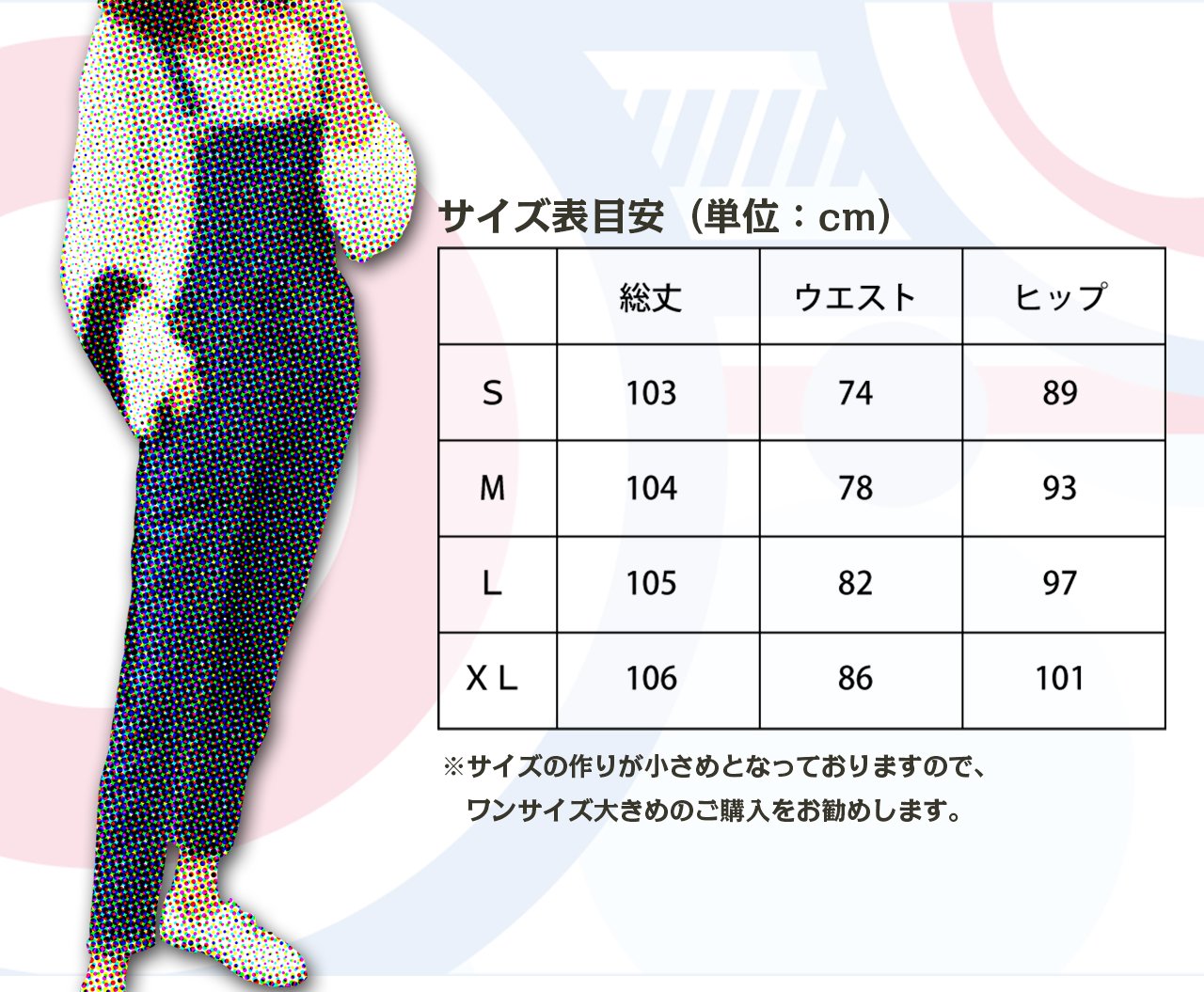 <L size> total length 105 cm / waist 82 cm / hip 97 cm