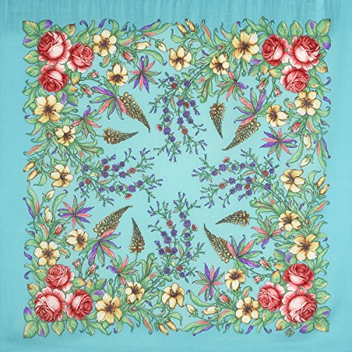 Product DescriptionPavlovo Posad Russian Shawl, Wrap, Scarf, Pashmina, Head Scarf, Neckerchief Light Blue Wool0