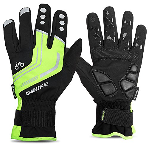 -. Title : インバイク(INBIKE)サイクルグローブ 冬用 メンズ バイクグローブ スマホ 防風 防寒 蛍光グリーン ブラック 反射素材使用