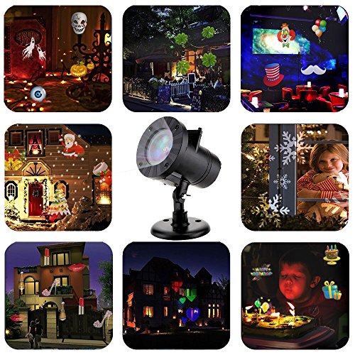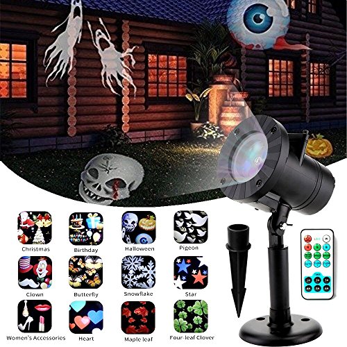 - All Year Round Holidays Landscape Projector Lights: come with 12pcs Switchable Pattern Slide Lens - heart shape, snowflake, clover, high heel, pigeon, skeleton, maple leaf, birthday cake, Santa, christmas tree, butterfly, star.Ideal for interior and exterior walls,landscapes,dance floors and more celebration series projection light designs for every occasion. Create instant atmosphere for parties and entertaining Transform any area from ordinary to extraordinary.
