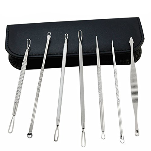 Le Fu Li 7 Pieces Blackhead Remover Pimple Acne Extractor Kit - Professional Facial Blemish Treatment Tools For