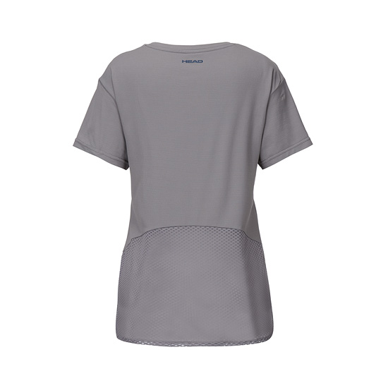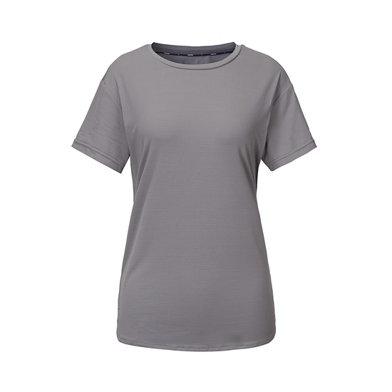 - 뒷판 하단에 메쉬 소재를 사용하여 흡습속건이 우수한 여성 러닝 티셔츠.