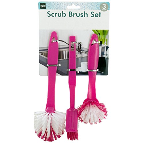 - Perfect for thoroughly cleaning all types of dishes, this 3-piece kitchen scrub brush set features brush heads in assorted shapes with durable bristles and angled handles for comfortable use