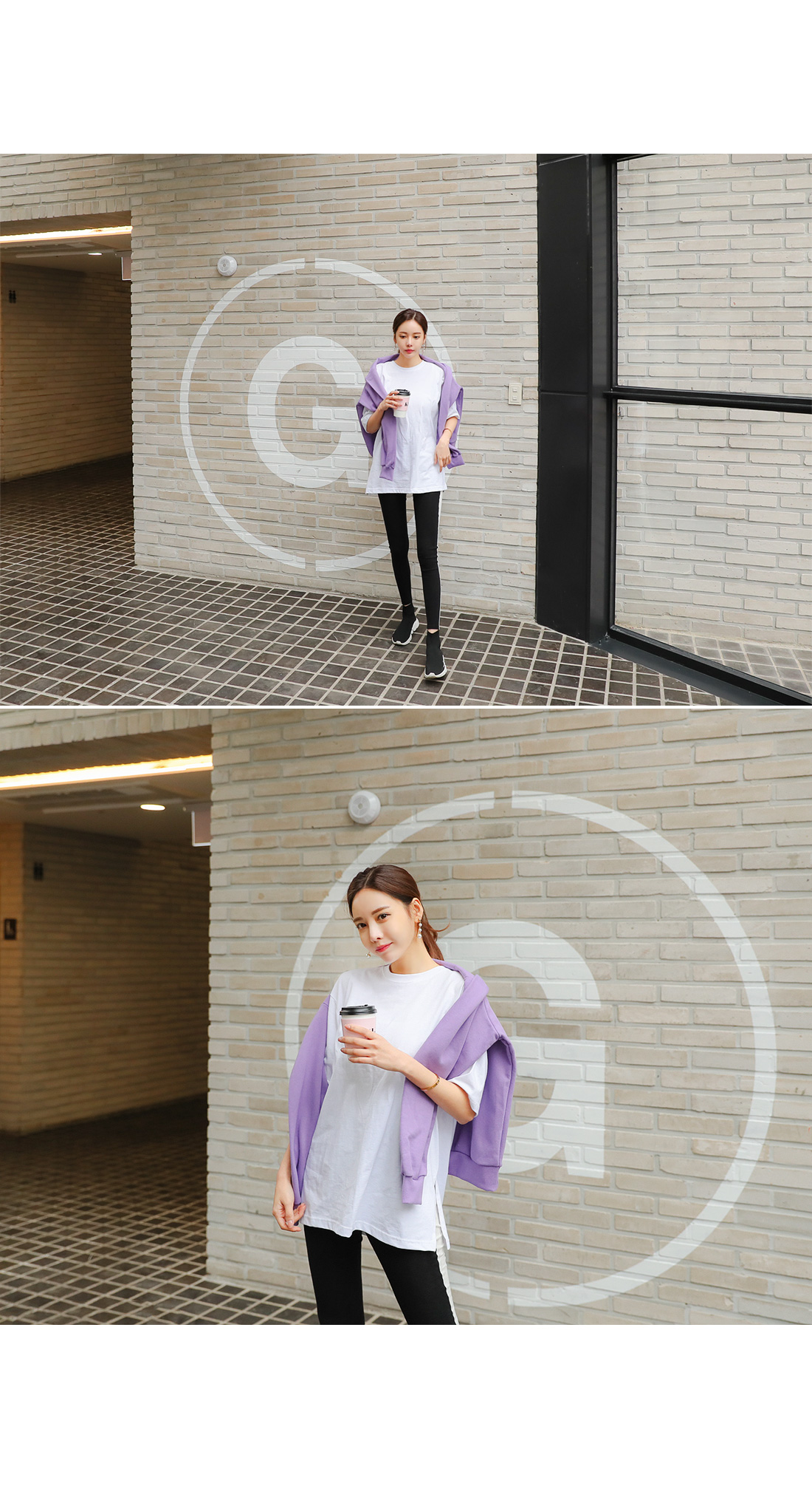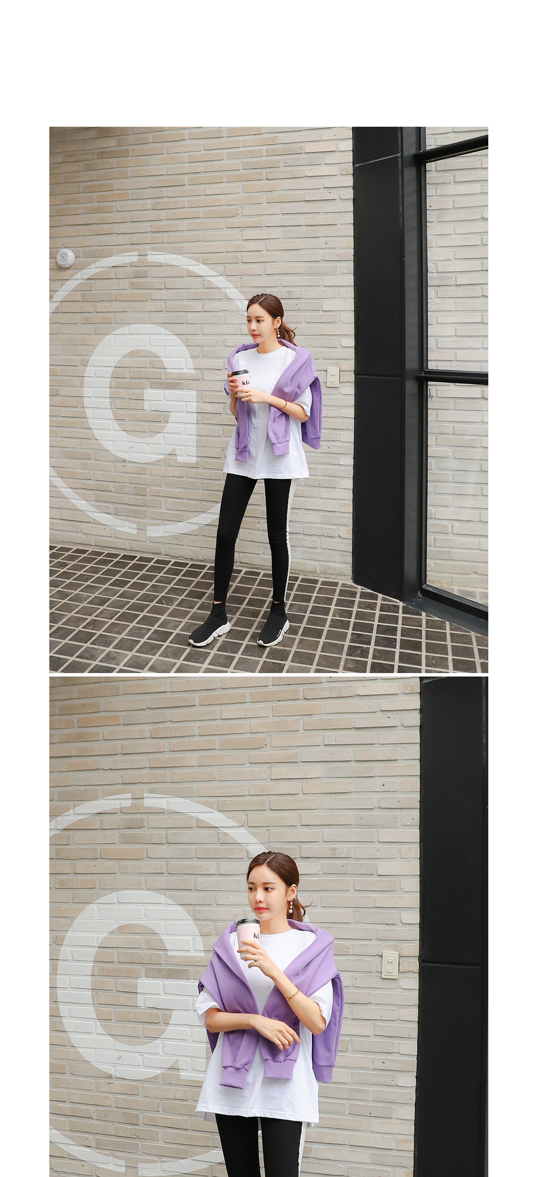 힙을 가려주는 롱 기장으로 제작되어 레깅스와 함께 매치하기 좋으며