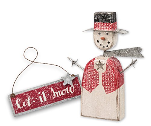 - The detailed shelf table top Christmas Snowman figures sitter add a little shine to your harvest decor with the cute and adorable design. It is bundle with a metal tin sign with message printed "Let it Snow".