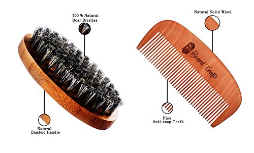 - ✔️TAKE YOUR BEARD GAME TO THE NEXT LEVEL WITH BOAR BRISTLE BRUSH- While other boar bristle brushes claim natural boar bristles but use nylon bristles & small, or simply just bristles come out after a few uses, Beard crafts boar bristle brush has an extra large 100 % natural boar bristles, tightly fixed on wooden handle, and will last longer than other brands on the market. This means perfect Redirection of facial hair growth, Reduce Beard curls, & redistributes oil throughout your beard evenly