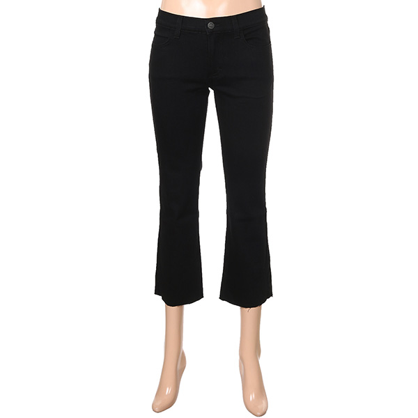 무릎 밑선부터 살짝 퍼지는 스타일의 기본블랙진 입니다.