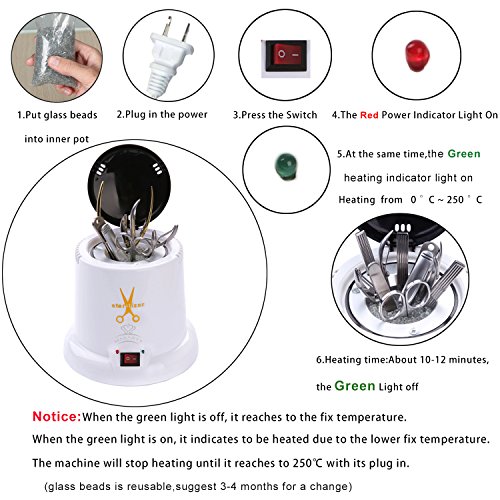 ★★★★★ High Temperature: The intelligent sterilizer can automatically increase to and maintain 250 degree high temperature when you plug in the power, put the glass ball into the inner pot and turn on switch, which keep the tools clean and sterilize.