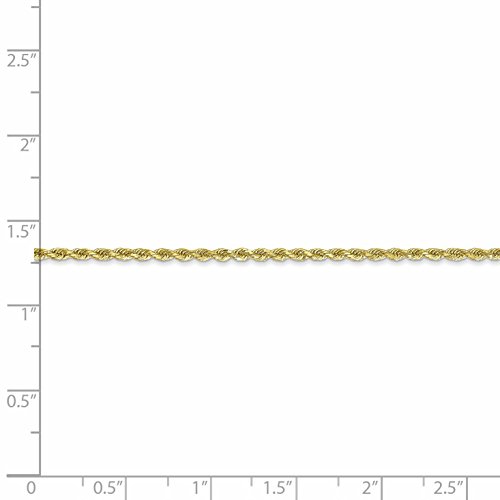 Chain Type: RopeAnklet Type: Chain StylesMaterial: Primary: GoldMaterial: Primary - Color: YellowMaterial: Primary - Purity: 10KChain Length: 9 inChain Width: 2 mmClasp /Connector: LobsterFeature(1): SolidTexture: Diamond-cut
