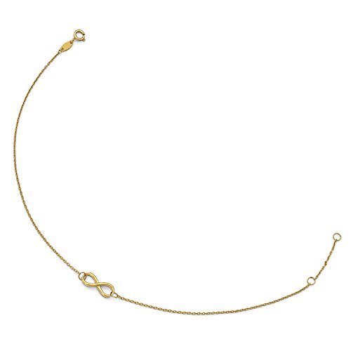 Solid 14k Yellow Gold Polished Infinity with 1in ext. Anklet 9"