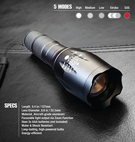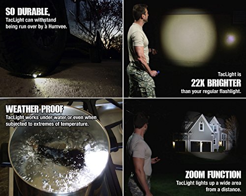 HIGH-POWER: Taclight is made from air-craft grade aluminum and can withstand extremes of temperatures, from freezing to boiling. It is water-proof and shock resistant. It will not break even when ran over by a car.
