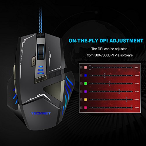 6 default adjustable DPI levels(1000/1500/2000/2500/3000/3500), installing the provided driver, you can even adjust DPI from 500 to 7000.