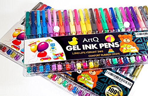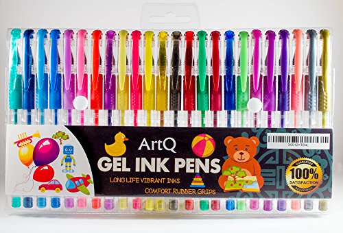 ArtQ Gel Pen Set (Glitter/Neon/Metallic and Pastel) with Soft Rubber Grips - Pack of 24