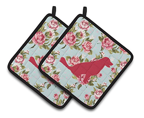 Caroline's Treasures BB1076-RS-BU-PTHD Labrador Shabby Chic Blue Roses Pot Holders (1 Pair), 7.5" x 7.5", Multicolor
