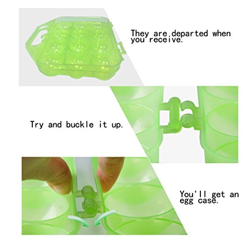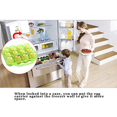 BIAL OTD Folding Portable Plastic 12 Eggs Container Holder Storage Box Case (2PCS Blue+Green)