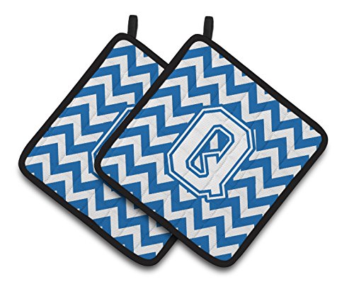 Caroline's Treasures Letter Q Chevron Blue & White Pair of Pot Holders CJ1045-QPTHD, 7.5HX7.5W, Multicolor