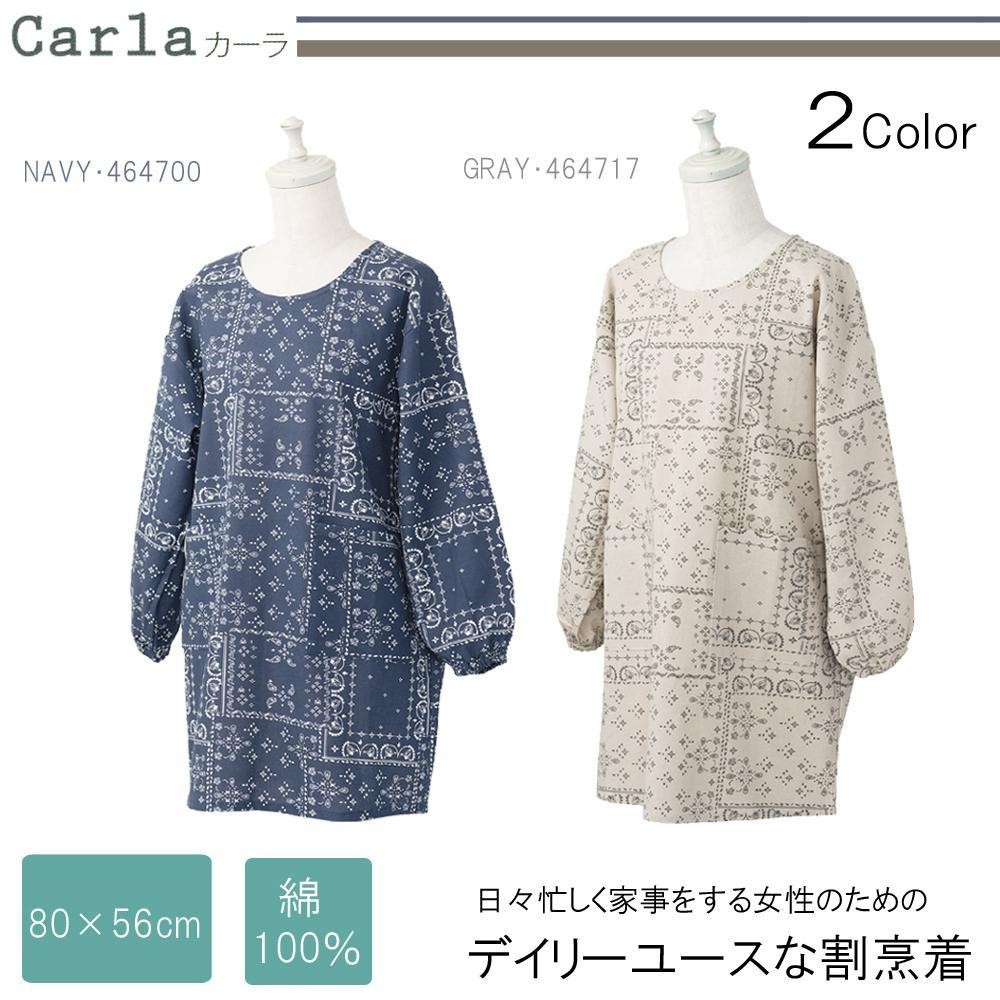 お洒落なデザインの割烹着です。日々忙しく家事をする女性におすすめです。 製造国:インド 素材・材質:綿100% 商品サイズ:着丈:約80cm、身幅:約56cm、袖丈:約25cm、裾幅:約55cm 重量:260g ※サプライヤー直送品  ご注文後3~4営業日後の出荷となります【商品名】カーラ カッポウギ GRAY・464717