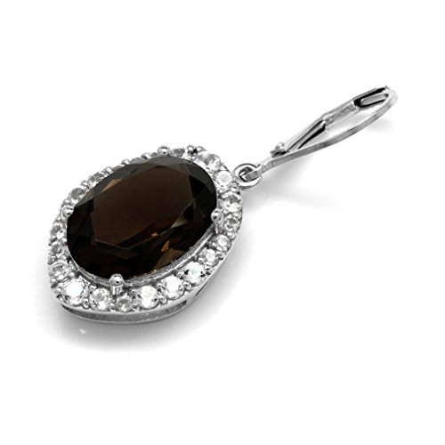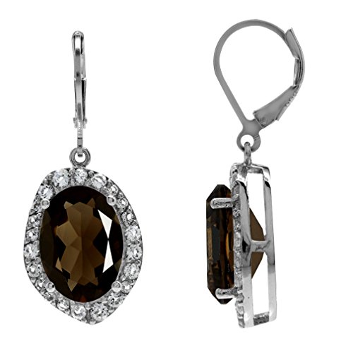 HUGE 10.44ct. Natural Smoky Quartz & White Topaz Gold Plated 925 Sterling Silver Leverback Earrings