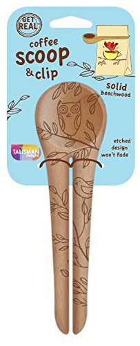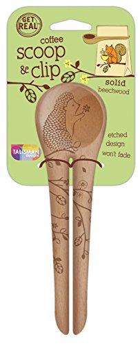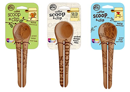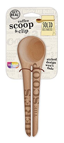 Talisman Designs Get Real Solid Beechwood Coffee Scoop and Clip, Styles Vary, 2-Pack