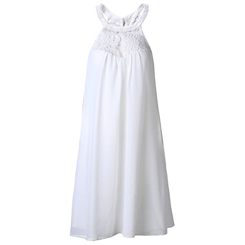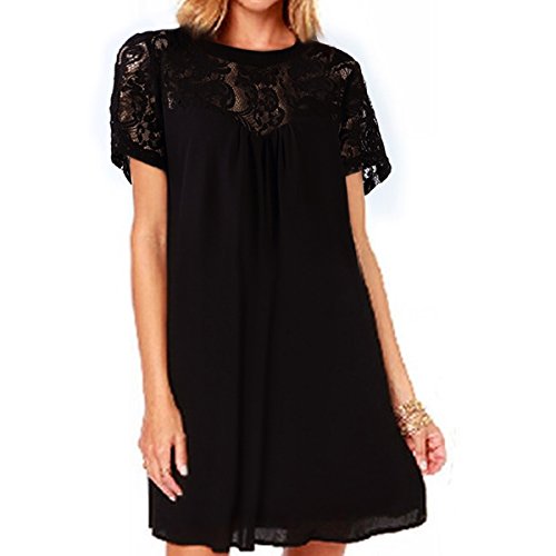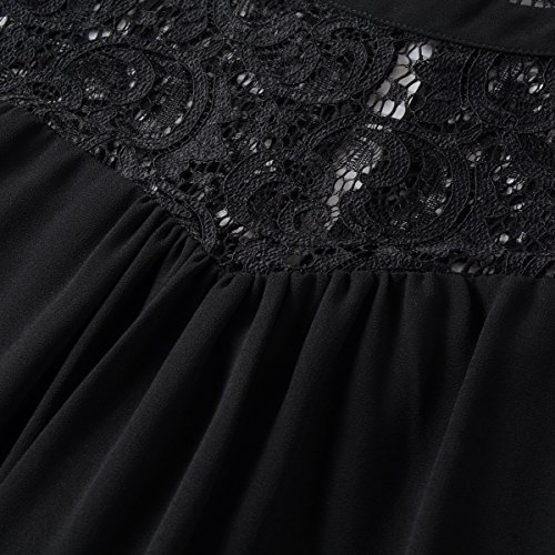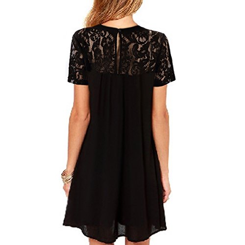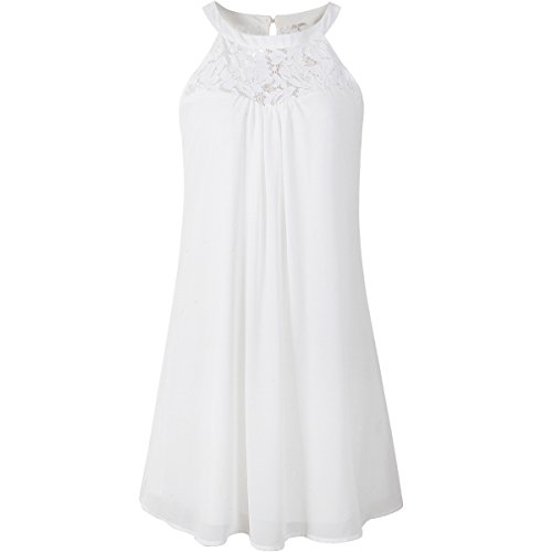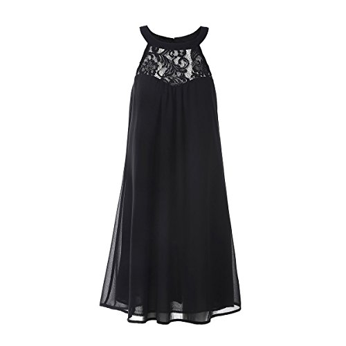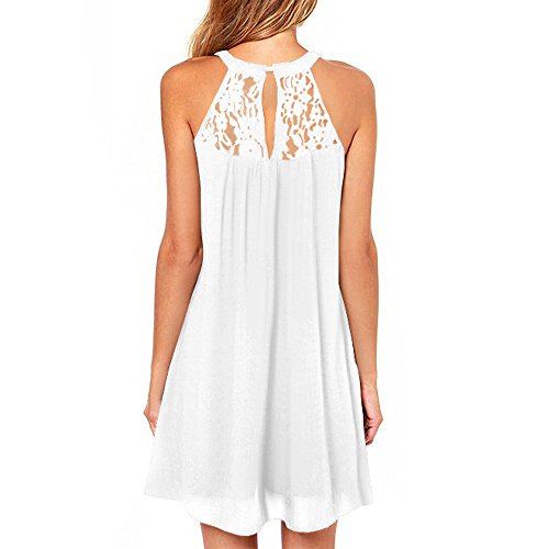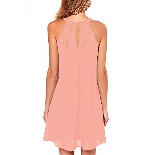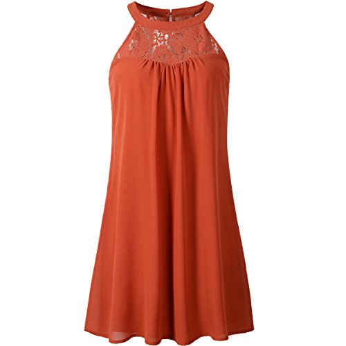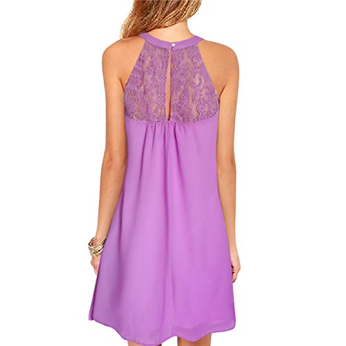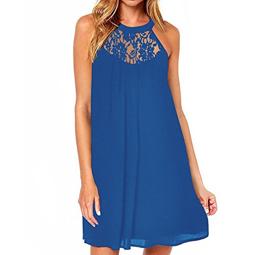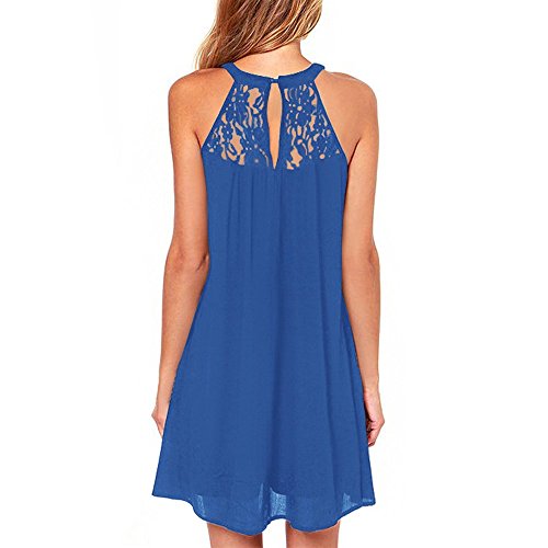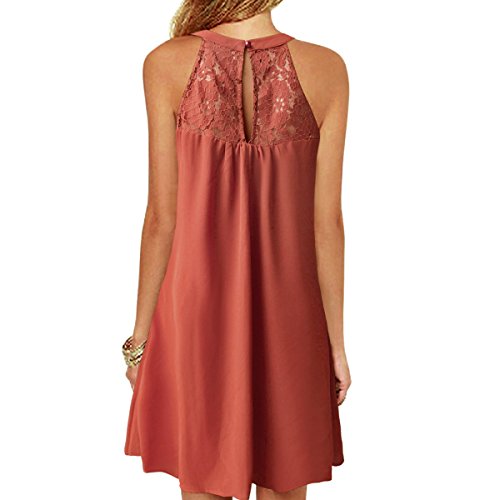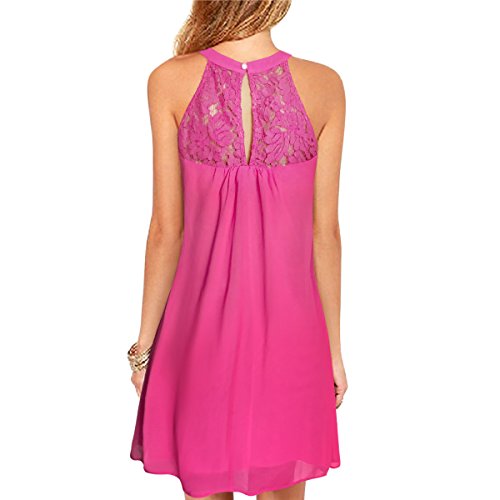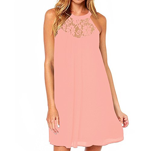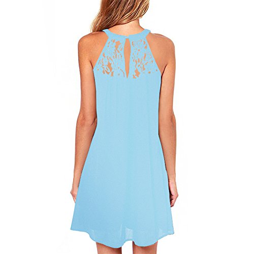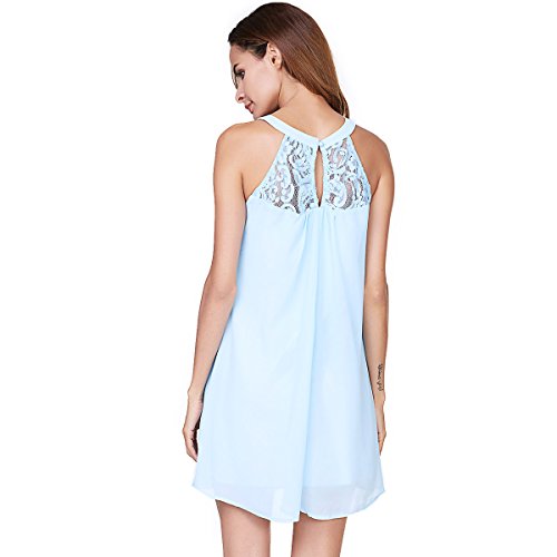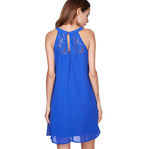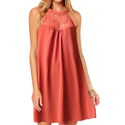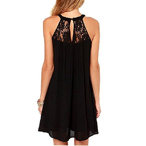 | Vanberfia Women's Sleeveless Lace Patchwork Loose Casual Mini Chiffon Dress |