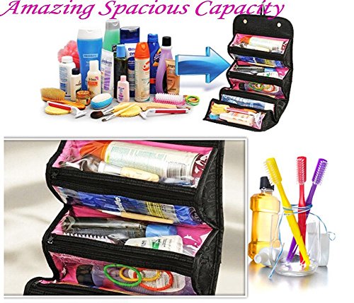 -. Title : Greenery Large Capacity 4-Layer Roll-up Travel Storage Bag Foldable Toiletry Bags Organizer Cosmetic Makeup Bag Pouch with a Flexible Hanging Hook