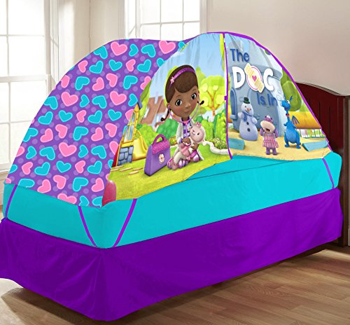 -. Binding : Toy -. Brand : Disney -. EAN : 0784857547337 -. Feature : Features unique Doc McStuffins design that is great for decorating any bedroom or playroom / Playful addition to any twin-sized bed with push light included - for indoor use only / Easy to clean with damp cloth and mild soap / 104 percent polyester with elastic corded poles for easy adult assembly / Dimensions: 32.5" L x 72" H x 36" W -. IsAdultProduct : 0 -. Label : Idea Nuova - LA -. Manufacturer : Idea Nuova - LA -. Model : GK318032 -. MPN : GK318032 -. PackageQuantity : 1 -. PartNumber : GK318032 -. ProductGroup : Toy -. ProductTypeName : TOYS_AND_GAMES -. Publisher : Idea Nuova - LA -. Studio : Idea Nuova - LA -. Title : Disney Doc McStuffins Bed Tent with Pushlight -. UPC : 784857547337 -. Warranty : No Warranty