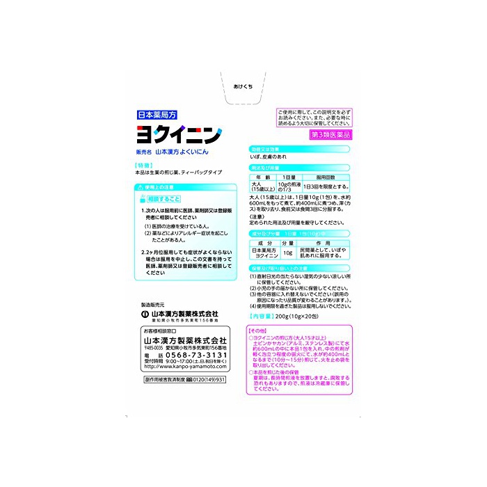 야마모토 한방 제약 【제3류의약품】《요쿠이닌》 10g×20